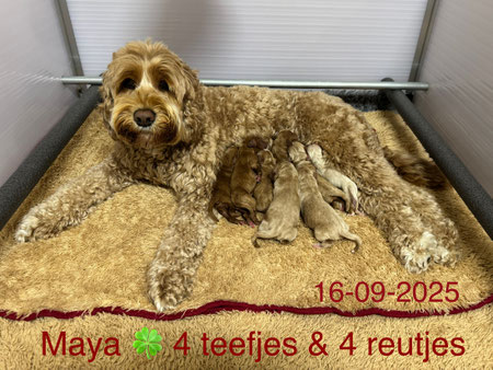 Op prinsjesdag, terwijl heel Nederland luisterde naar de Troonrede, schreef Maya haar eigen geschiedenis. Deze lieverd werd voor de eerste keer mama en schonk het leven aan acht prachtige puppy's. Vier stoere reutjes en vier lieve teefjes, een perfect evenwicht.